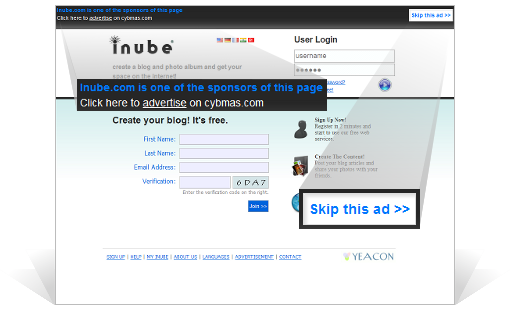 Cybmas is an online advertising company for both advertisers and website owners. At the moment, our main product is Full Page Ads. A full page ad is an ad type that gives the advertiser direct traffic. There is no need for banners, links and clicks! If a visitor click an internal link on a publisher website, he/she will see your full page in the next page. At the top of the site there is a link "Skip Ads" to continue surfing on publisher. It's completely an ultimate way of promoting your website.Click here to see a "Full Page Ads" demo!